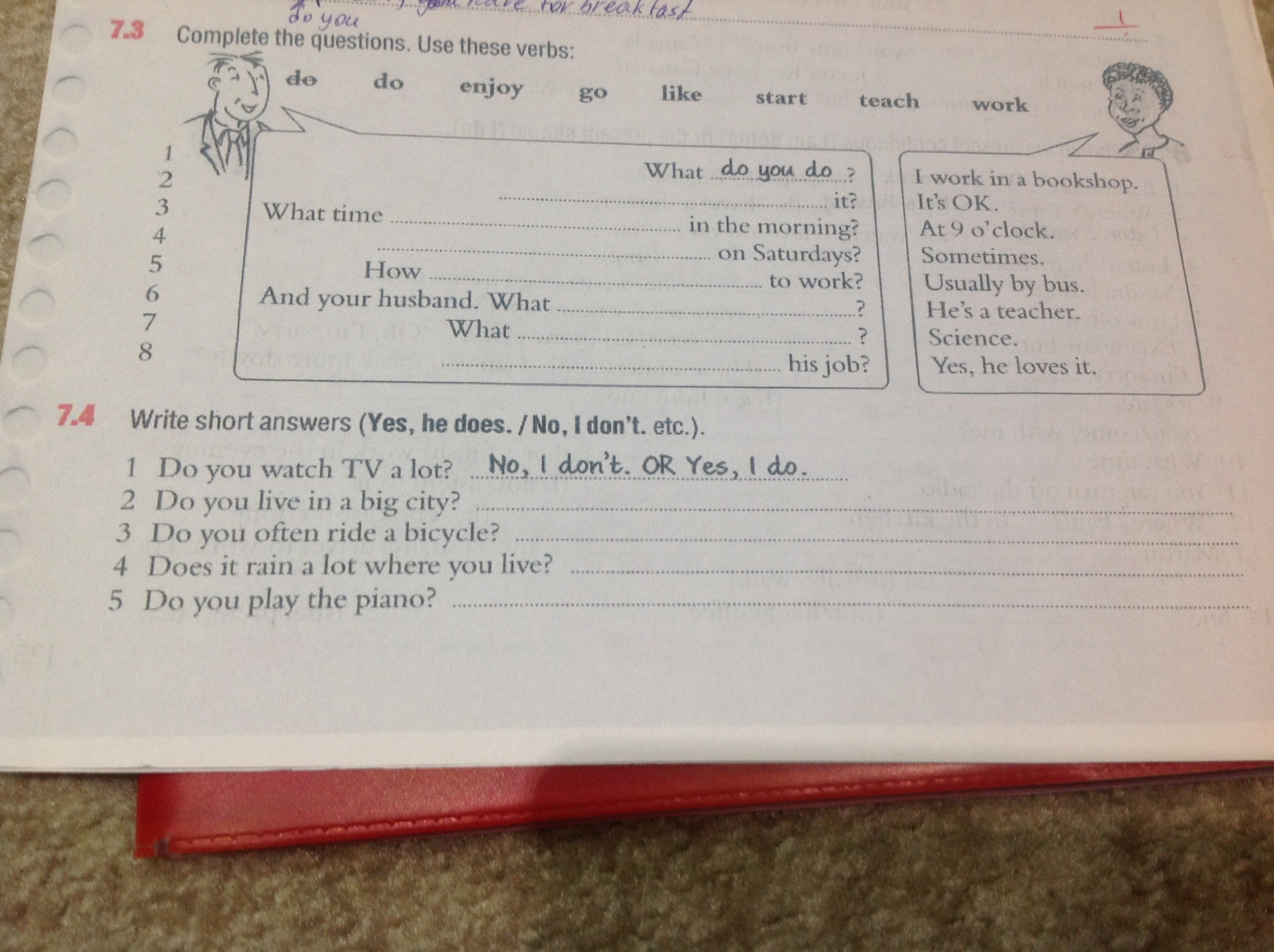 4. Does it rain a lot where you live?Yes, it does. OR No, it doesn`t.
