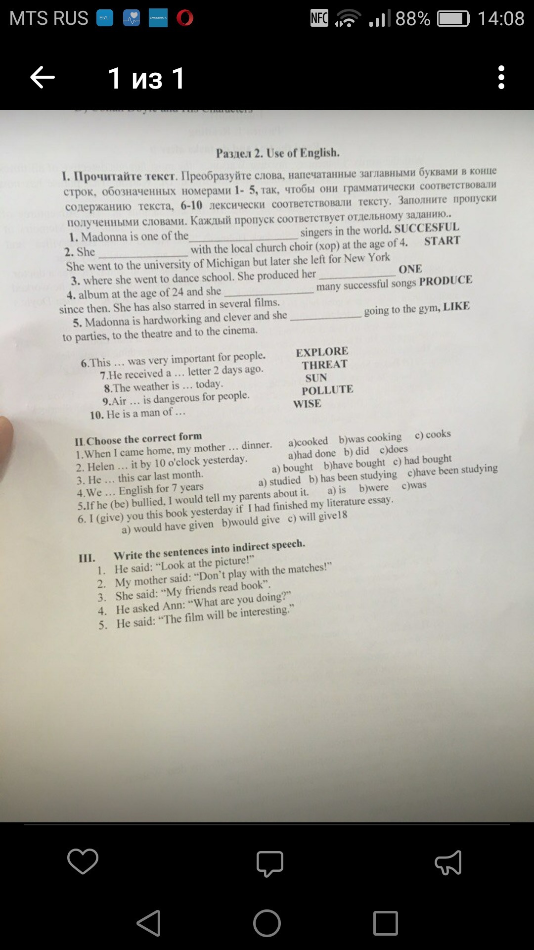 задание 2 выбрать правильную форму