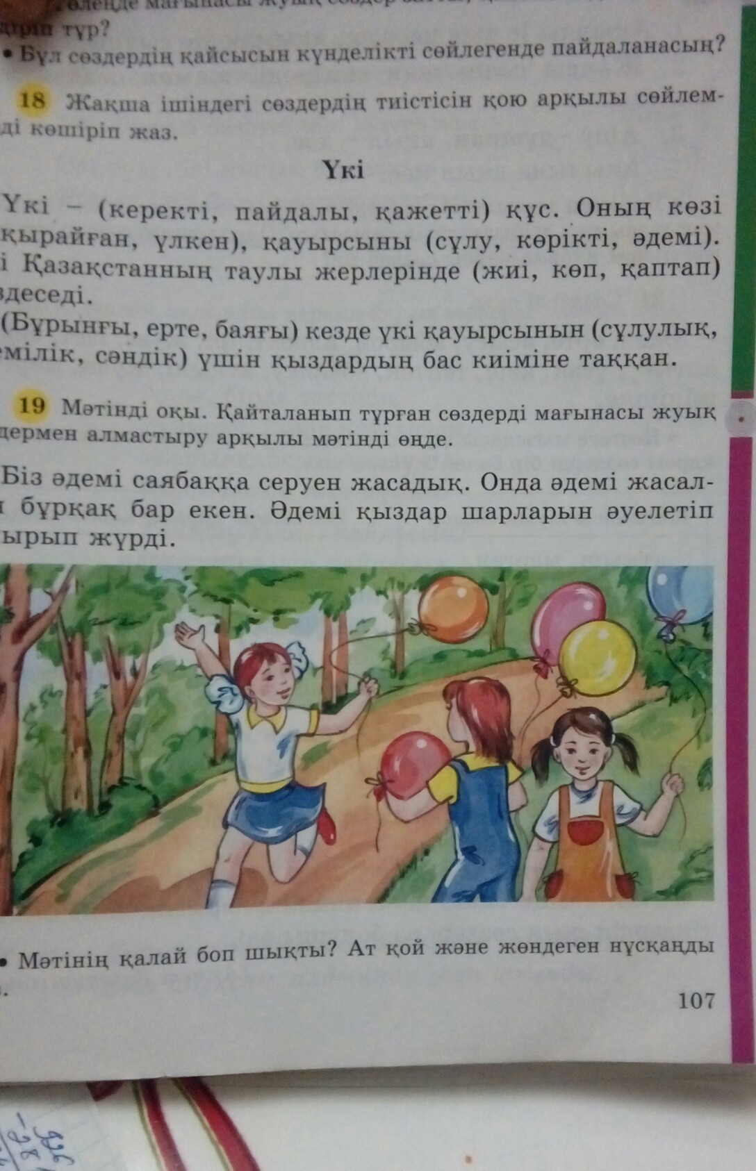 Үкі-керекті құс.Үкінің көзі үлкен,қауырсыны әдемі Қазақстанның таүлы жерлерінде жиі кездеседі.Ерте кезде үкі қауырсынынан әдемілік үшін қыздардың бас киіміне таққан.