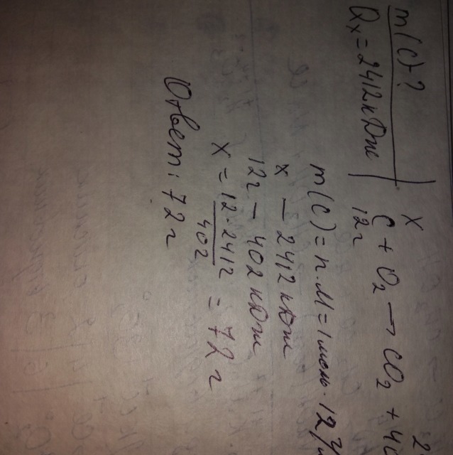 Вычислите по термохимическому уравнению реакции: C+O2=CO2 + 412 кД массу сгоревшего углерода если известно что при этом выделилось 82,4 кДж теплоты