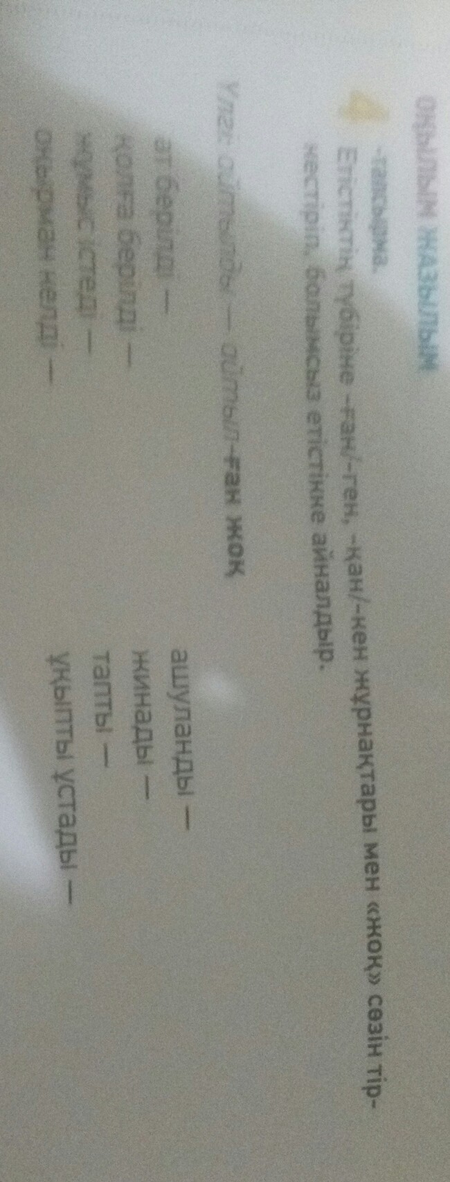 ат берілген жоқ, қолға берілген жоқ, жұмыс істеген жоқ, оқырман келген жоқ, ашуланған жоқ, жинаған жоқ, тапқан жоқ, ұқыпты ұстаған жоқ