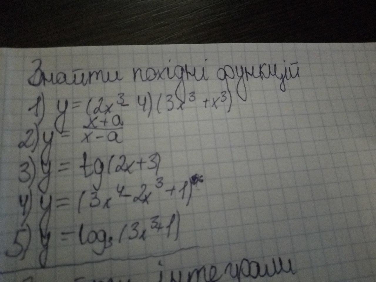 помогите найти производную функции(знайти похідну функцію)