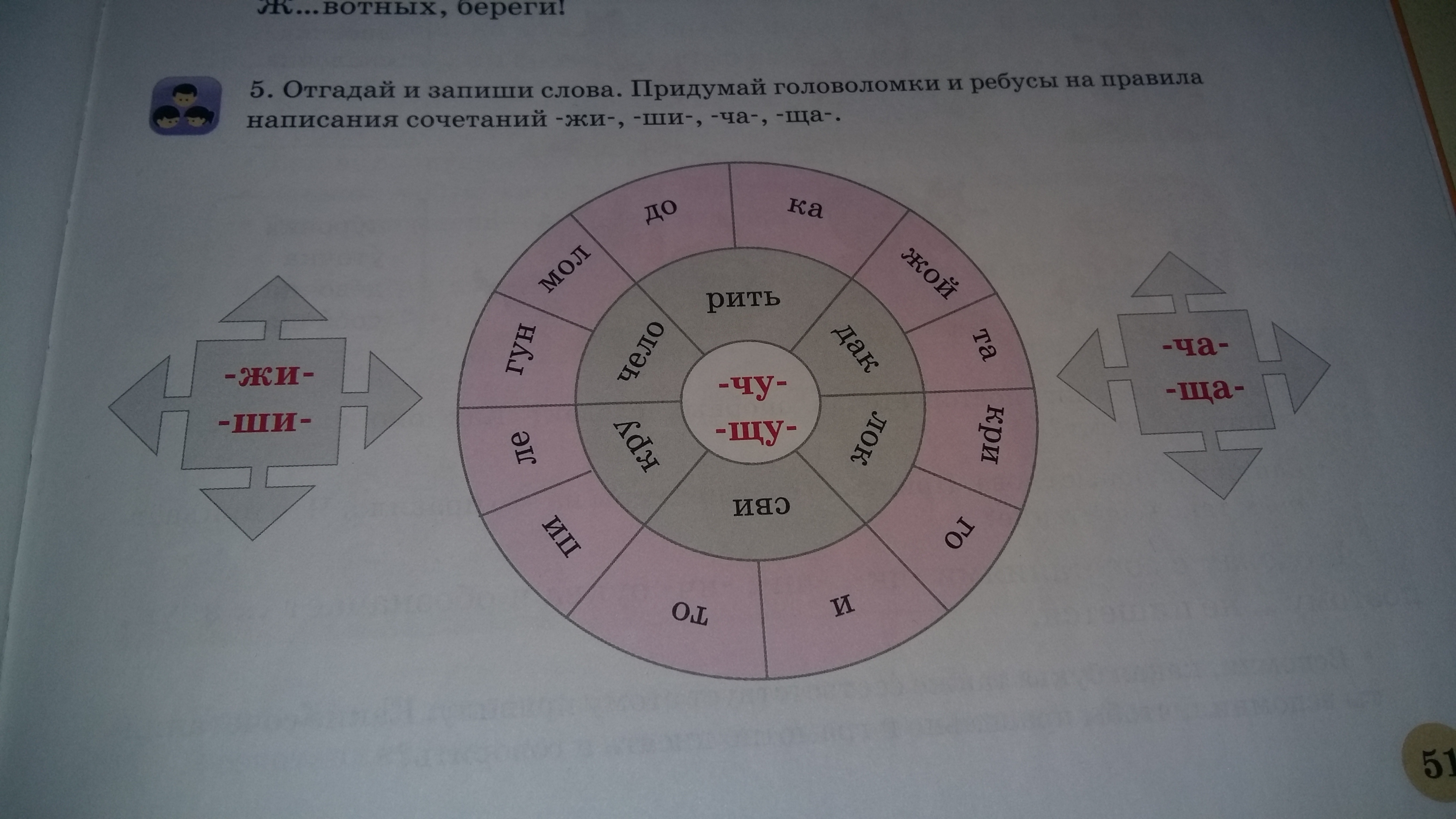 отгадай и запиши слова. Придумай головоломки и ребусы на правила написания сочетаний -жи-, -ши-, -ча-, -ща-.