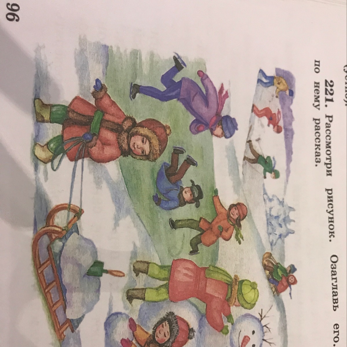 Расмотри рисунок. Озаглавь его. Составь по нему рассказ Напиши текст Используй слова: Шапка варежки гладки Мёд лопатка снеговик морковка весело и Другие составьте текст из пяти-шести Предложений на тему<< Наша любимая игра>> Напиши текст