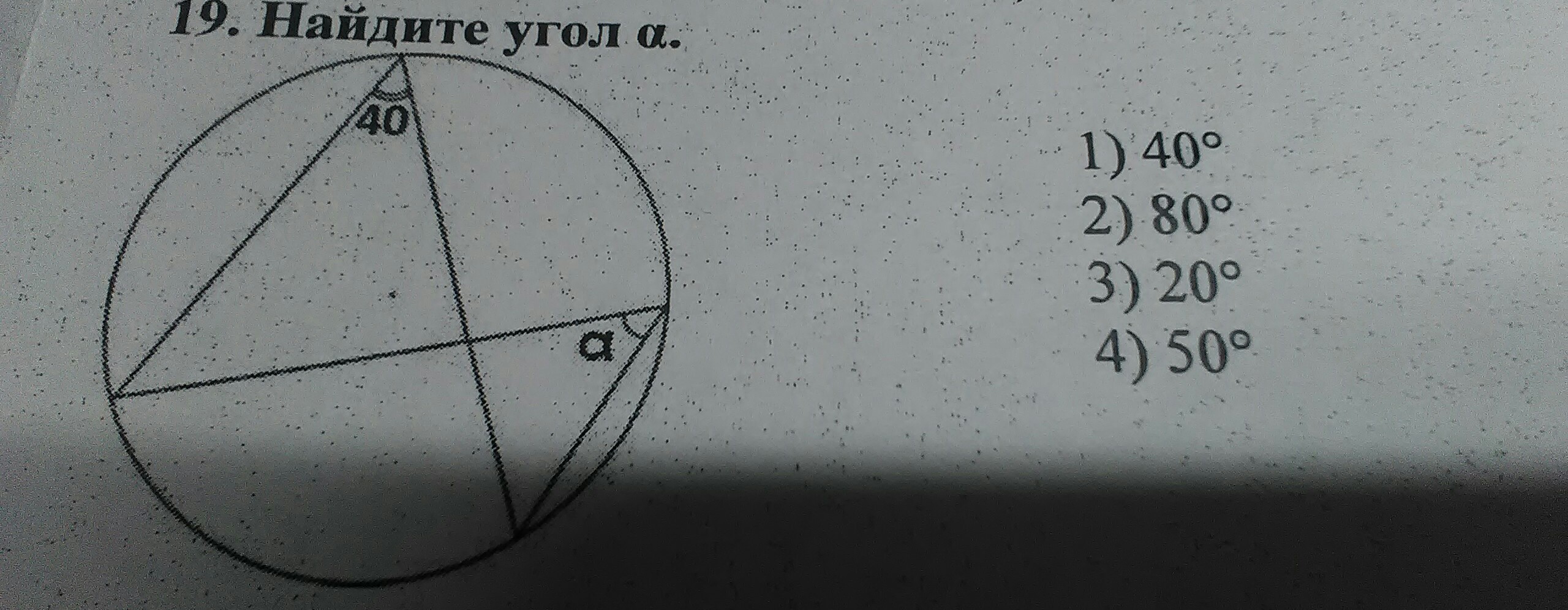 4) 50. так как прямоугольный треугольник , 90+40=130
