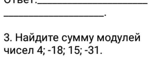 4-18+15-31=-30, (модуль отрицательного числа- число положительное) Значит модуль -30=30. Сумма модулей чисел равна 30