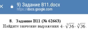 4 sqrt[3]{36}  sqrt[6]{36} = 4 sqrt[3]{36}  sqrt[6]{6^{2} }=4sqrt[3]{36}  sqrt[3]{6}=4sqrt[3]{36*6}=4sqrt[3]{6^{2} *6}=4sqrt[3]{6^{3}}=4*6=24