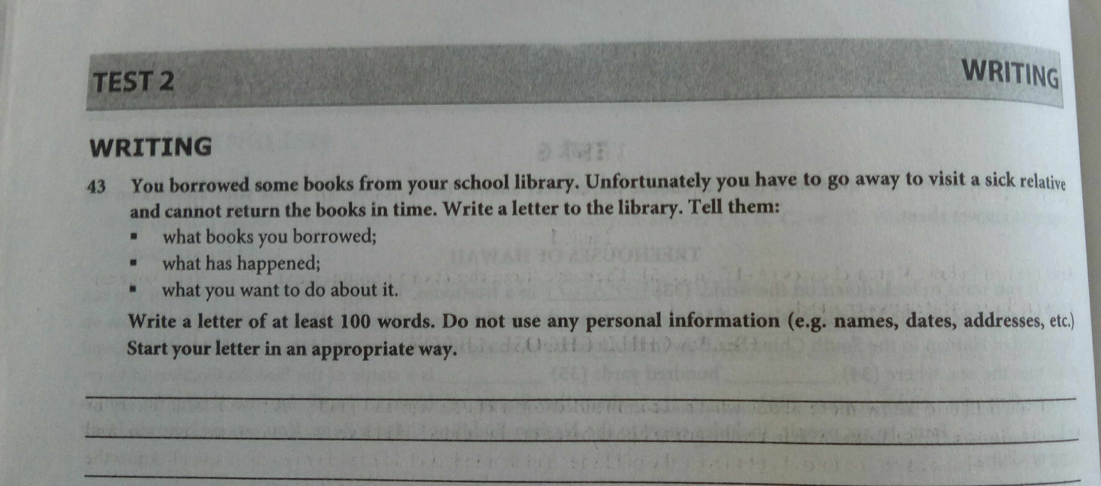 Good afternoon! (имя) is addressing you. I borrowed some books two weeks ago. They were all interesting and I was impressed when I read them. But I have one problem. I cannot return the books in time, because I have to go away to visit a sick relative. Maybe I can do something after my returning? I hope you will understand me.