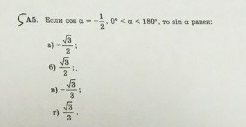 Т.к 0<а<180, то sin принадлежит 1,2 четверти => sina=корень из 3/2