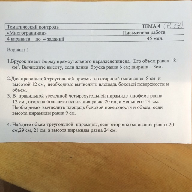 3. Боковые грани правильной усечённой 4-угольной пирамиды - это 4 одинаковых трапеции. Высота трапеции - апофема пирамиды
