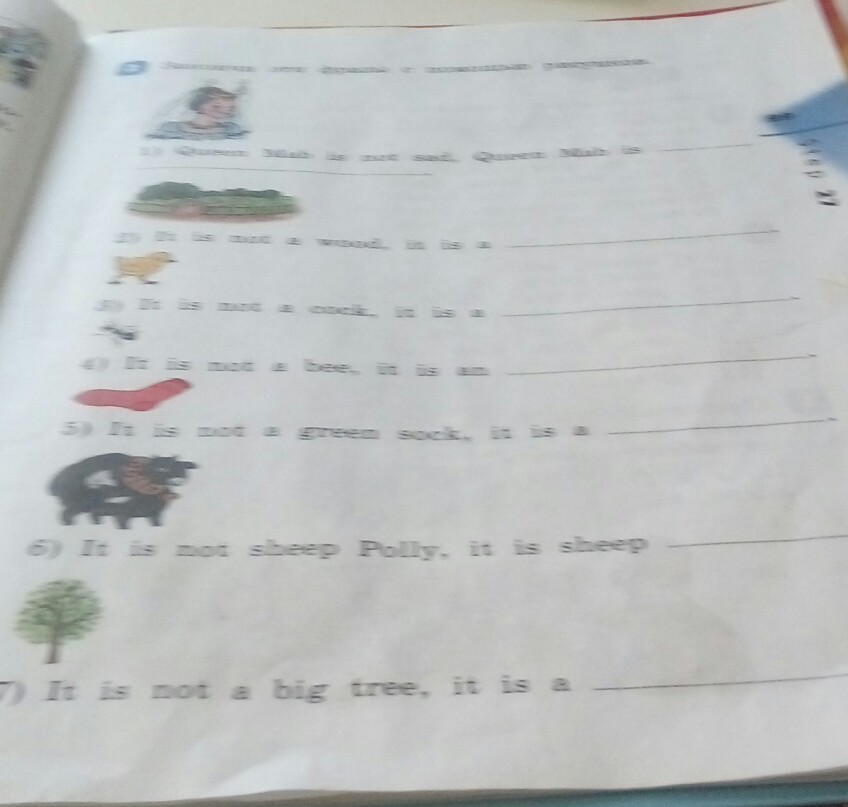 закончи эти фращы с помощью рисунков 6) It is not sheep Polly, it is sheep 7) It is not a big tree it is a 8)It is not a good car, it is a .