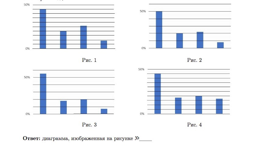 Какая из следующих диаграмм точнее всего показывает распределение уча-