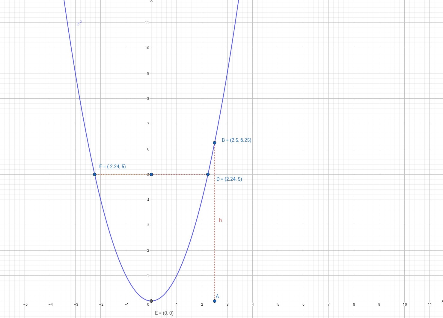 x при которых y=5, x=-2,24 и x=2,24 (два корня квадратной функции)