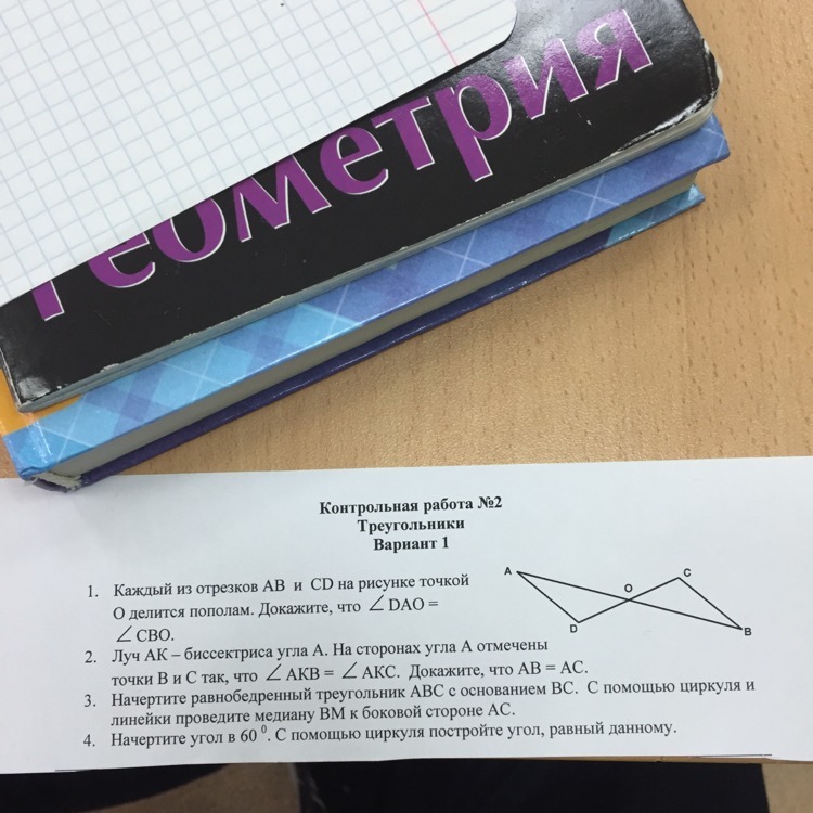 Какой из отрезков AB и CD на рисунке точкой O делиться пополам . Докажите , что угол DAO = CBO