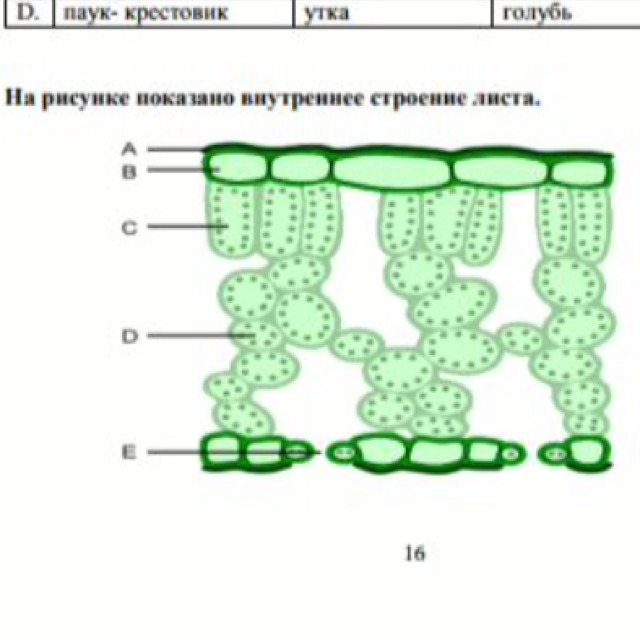 E-устьица/газообмен/СО2/О2В- Верхний эпидермис /прозрачный/пропускаетсвет