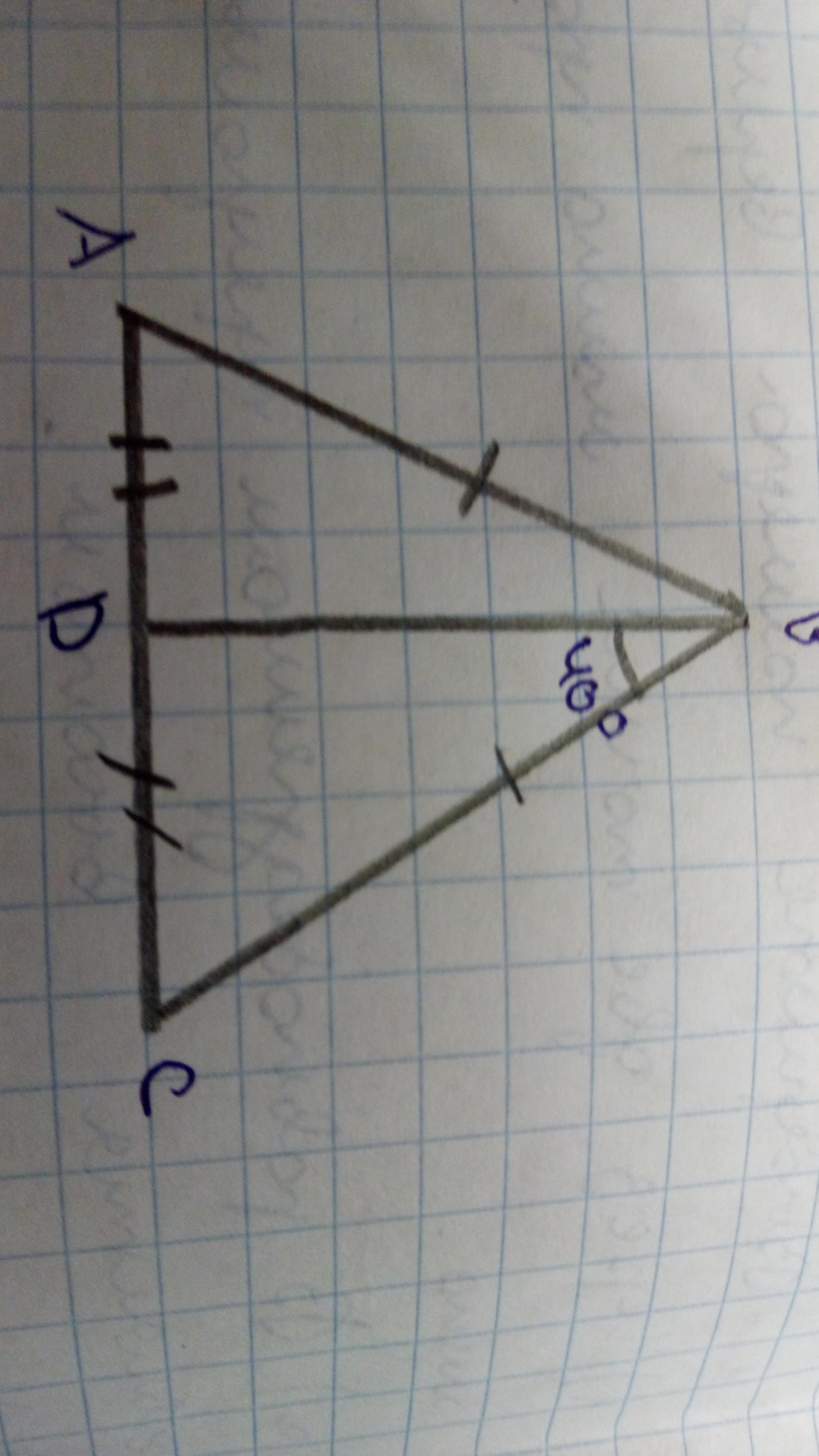 Медиана BD делит угол ABC пополам, значит ABD+DBC=ABC, ABD=DBC=40