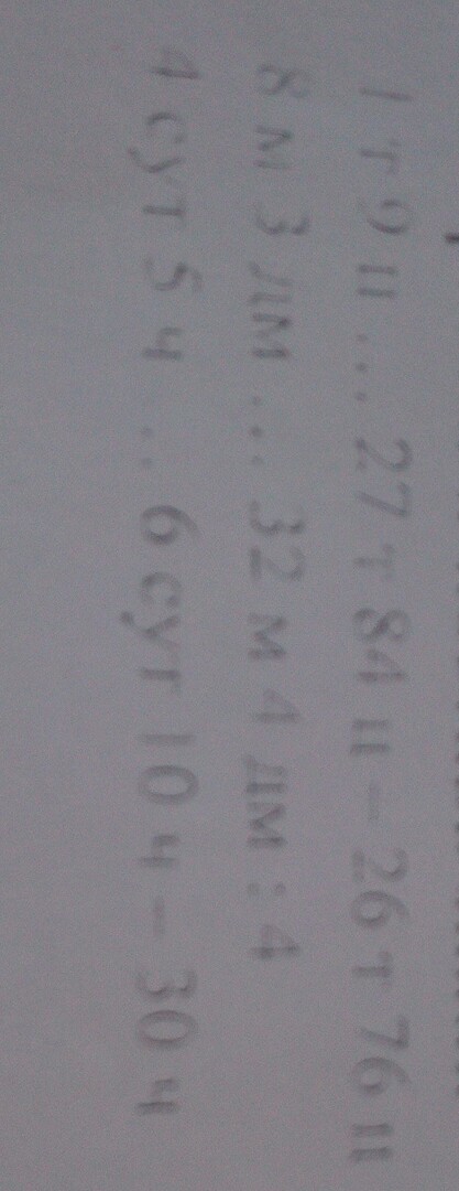 1)1т 9м>27т76м-26т76м 2) 8м32дм<32м4дм 3) 4сут5ч<6сут10ч-30ч