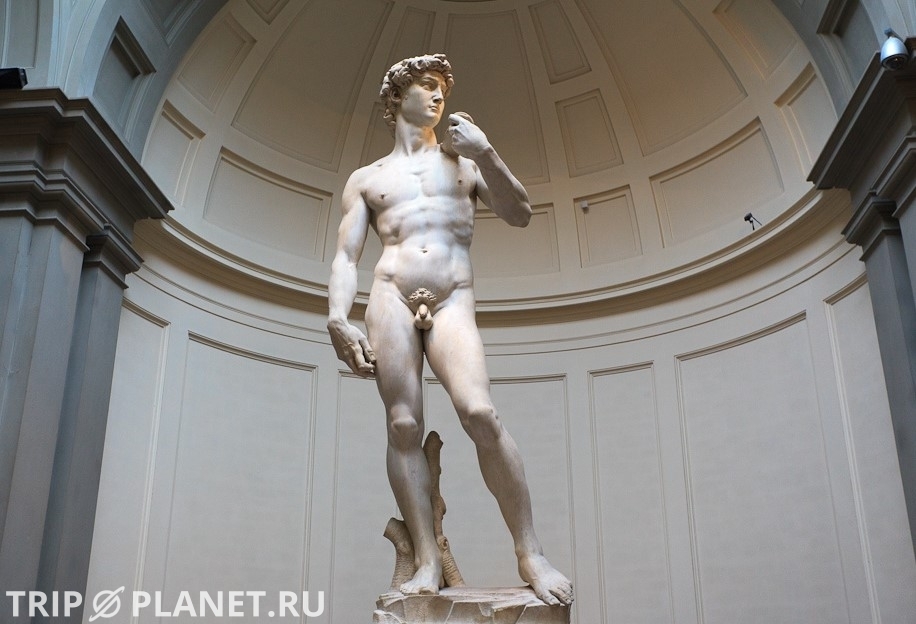 Таким образом, Микеланджело изобразил Давида не в виде хрупкого подростка, попирающего отрубленную голову Голиафа, как это делали мастера XV в. , например, Донателло, а как прекрасного, атлетически сложенного гиганта в момент перед сражением, полного уверенности и грозной силы (современники называли ее terribilita — устрашающая) .