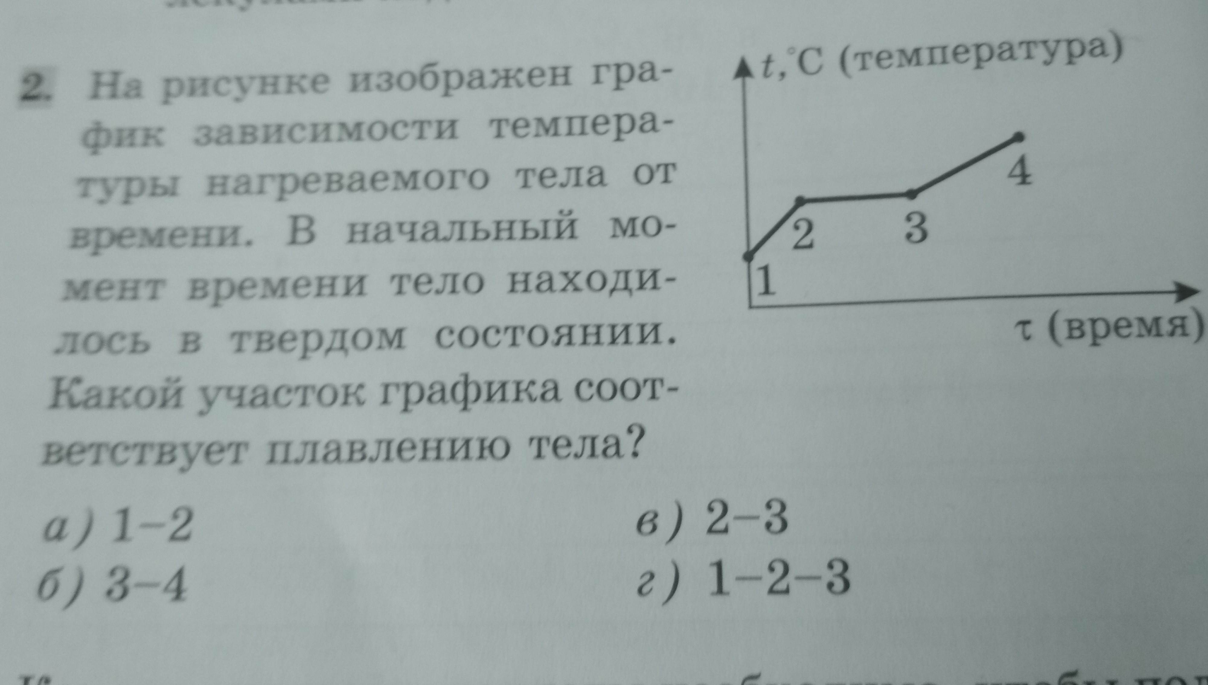 В) 2-3 из твёрдого переходит в жидкое, а значит плавится
