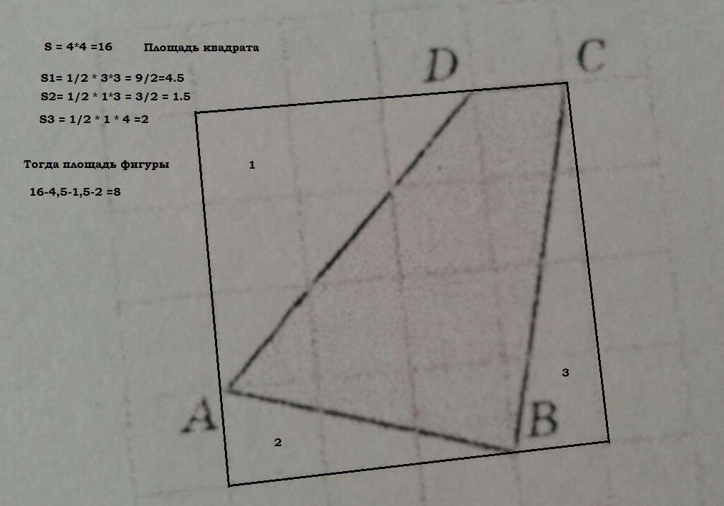 Найдите площадь четырехугольника ABCD считая стороны квадратных клеток равными 1