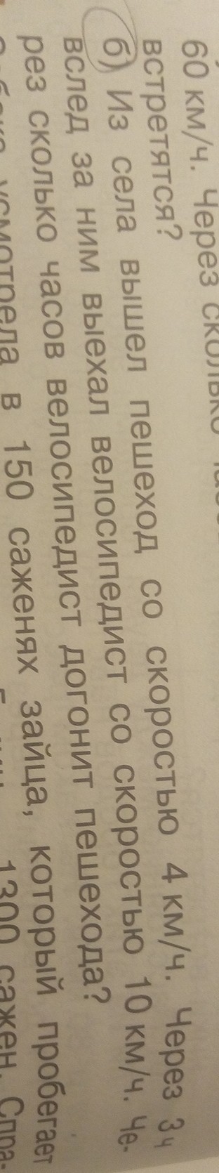 Из села вышел пешеход со скоростью 4 км/ч.Через 3ч вслед за ним выехал велосидист со скоростью