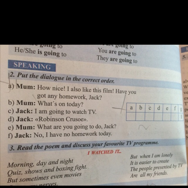 5-a)Mum:How nice!I also like this film!Have you got any homework,Jack?