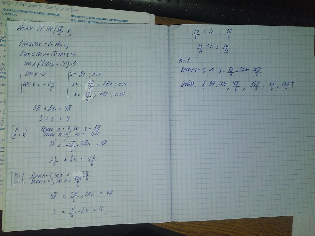Сначала решаем уравнение, затем подчиняем корни заданному промежутку