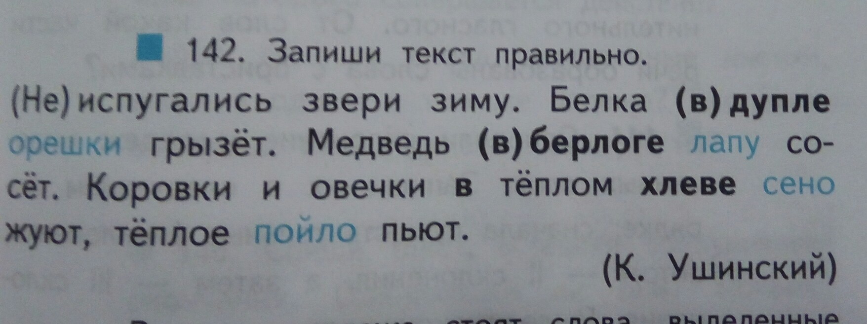 Не испугались звери зиму.Белка в дупле орешки грызет.Медведь в берлоге лапу сосёт.Коровки и овечкив тёплым хлеве сено жуют,тёплое пойло пьют