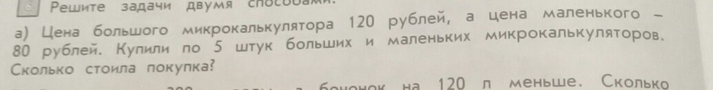 1 действие 120*5= 600(руб.)-стоили большие микрокалькуляторы;