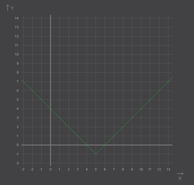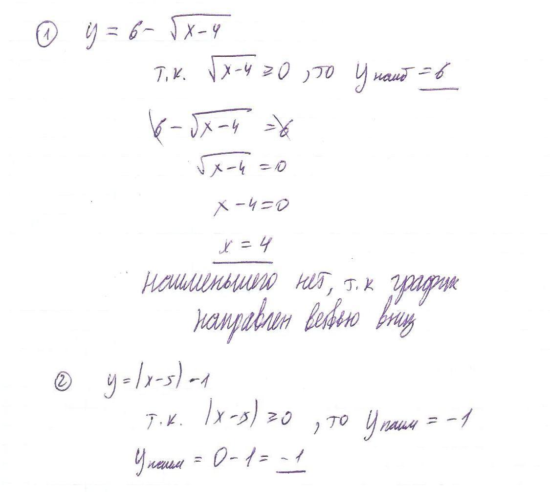 2.Функция y=|x-5|-1 является ограниченной снизу.Укажите наименьшее значение функции.