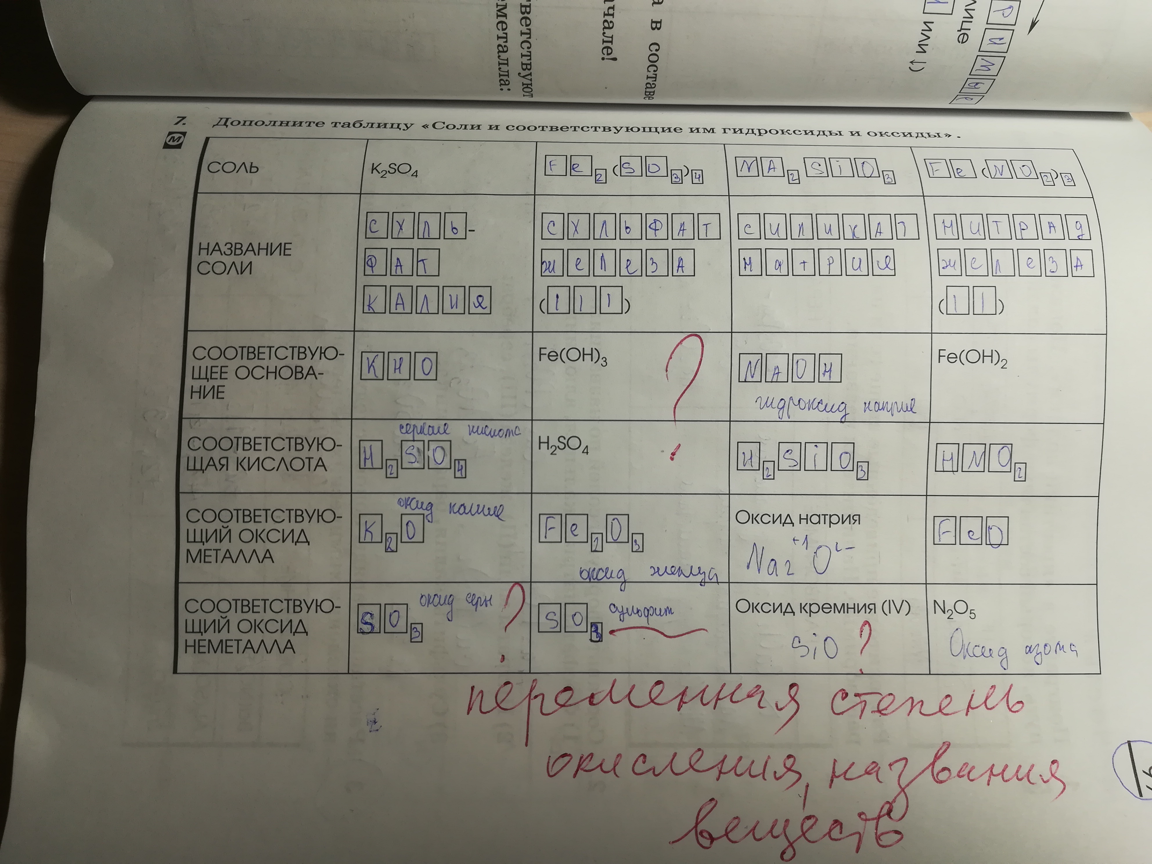 Ребят, помогите с химией. Нужно написать переменную степень окисления и названия веществ.
