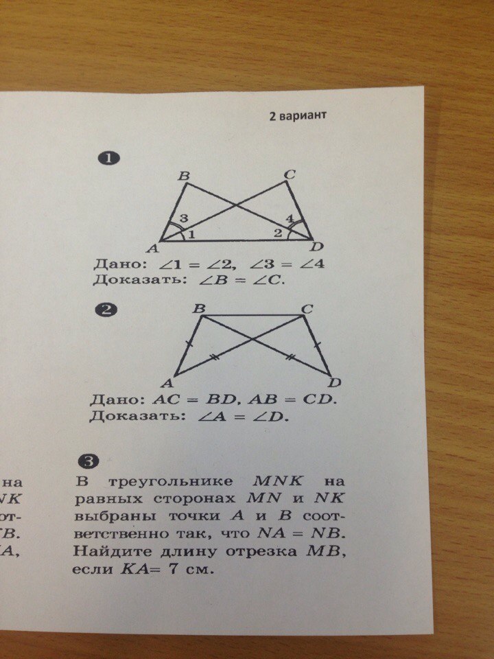 MNK-треугольник . MN=NK , NA=NB , KA=7см