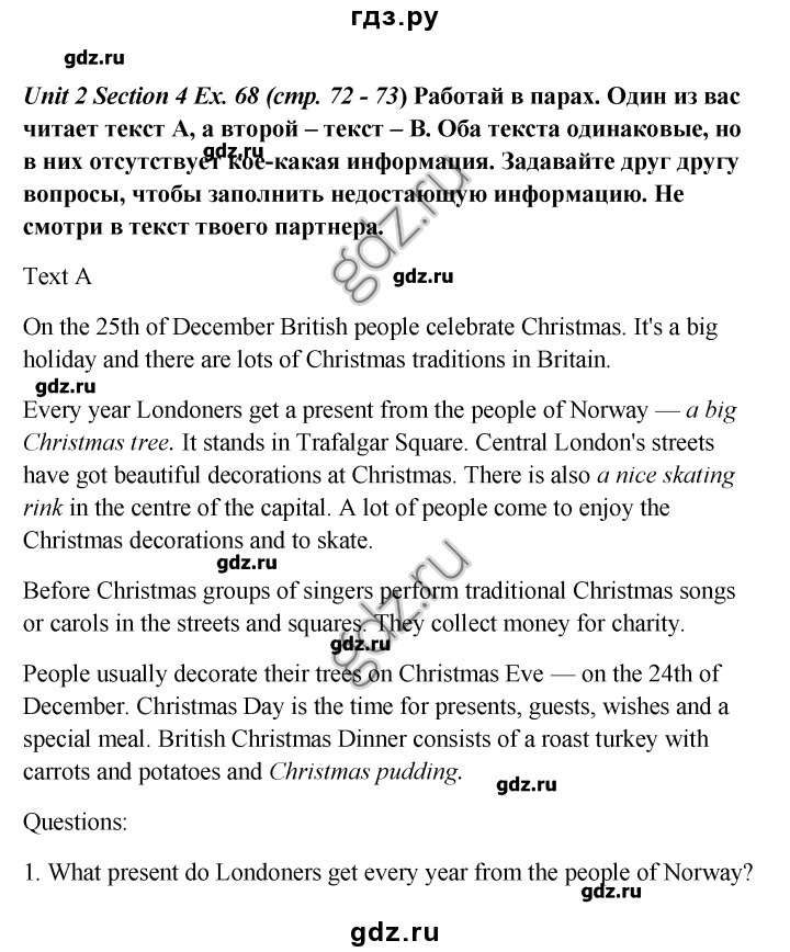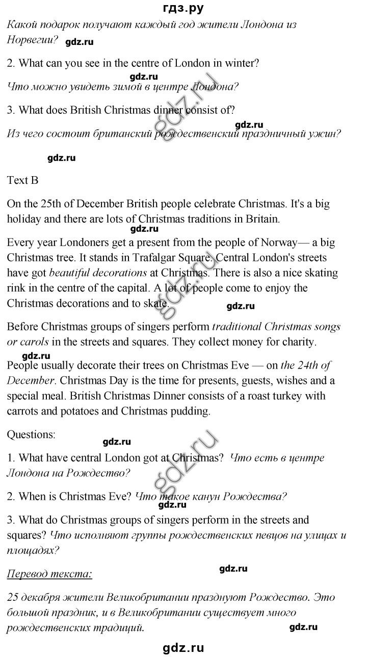 Люди обычно украшают свои деревья в канун Рождества - в день Рождества - это время подарков, гостей, желаний и особых блюд. Британский Рождественский ужин состоит их жареной индейки с морковью и картофелем и Рождественский пуддинг.