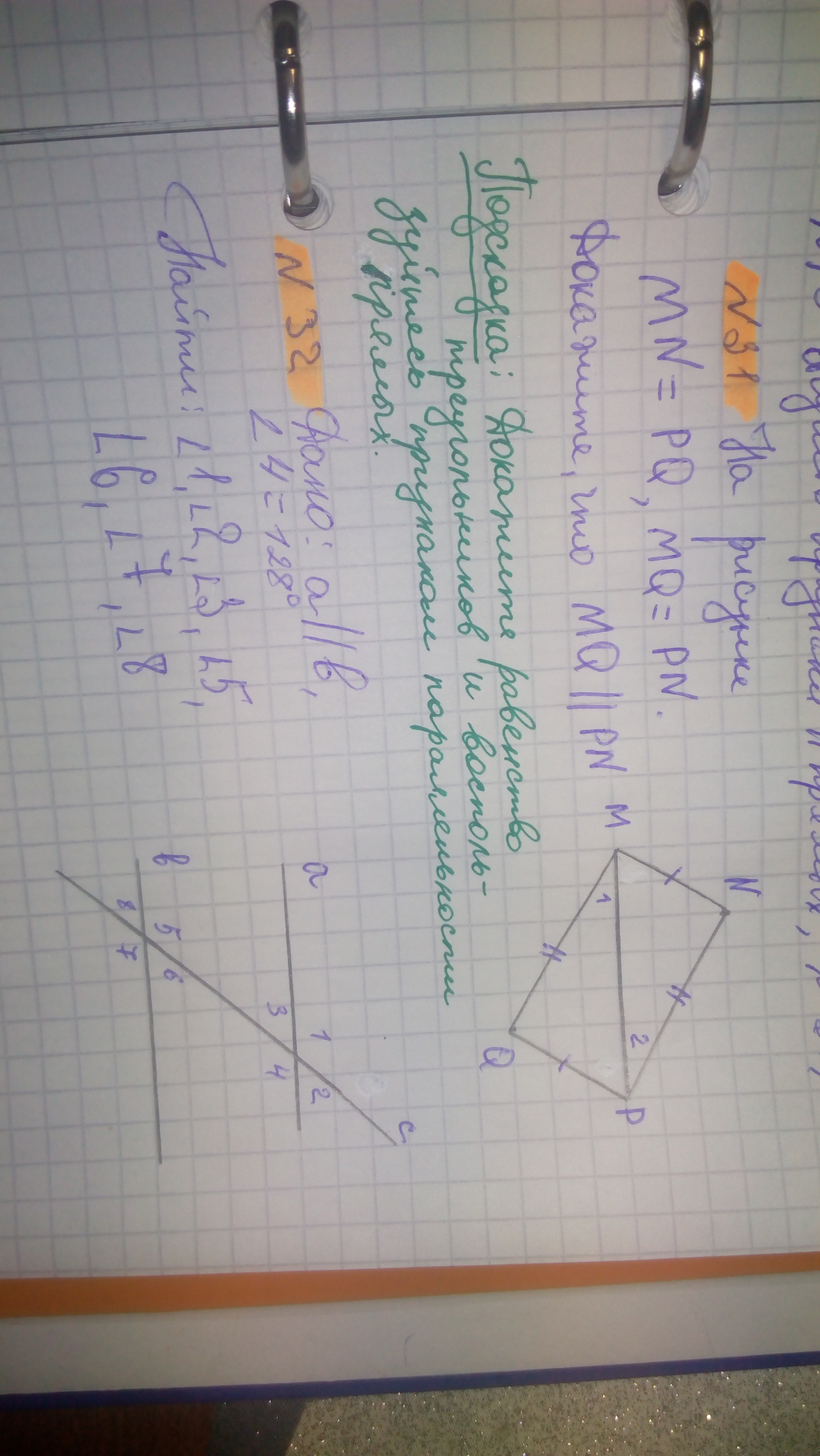Используй свойства параллелограмма для доказательств)