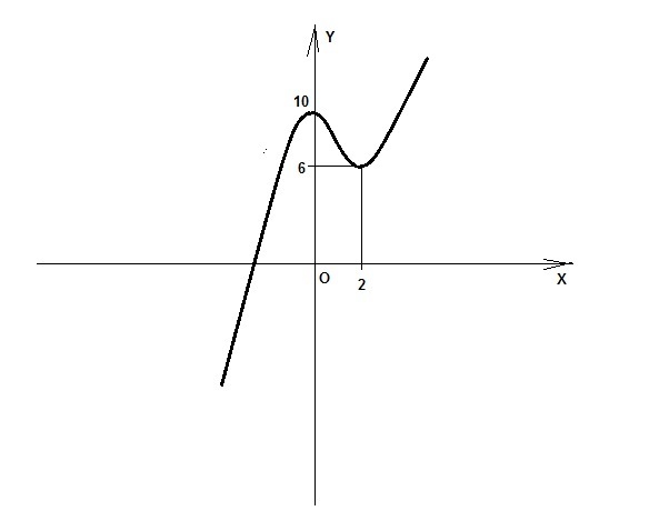 x2 = 2; y2 = 8 - 3*4 + 10 = 6 - минимум