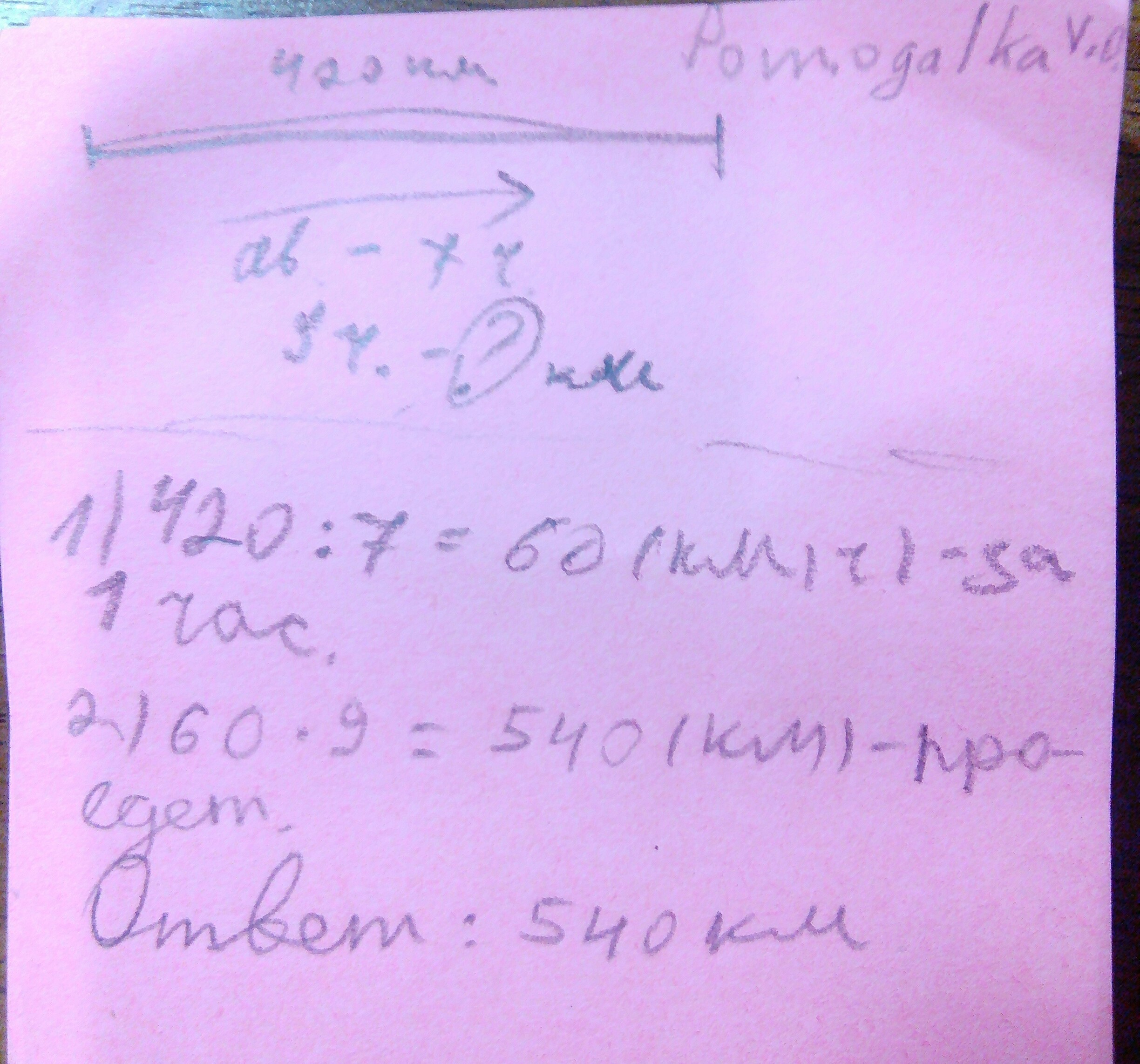 расстояние , которое проехал автобус 420 км. Автобус проехал это расстояние за 7 часов . Какое расстояние проедет за 9 часов, двигаясь с той же скоростью?