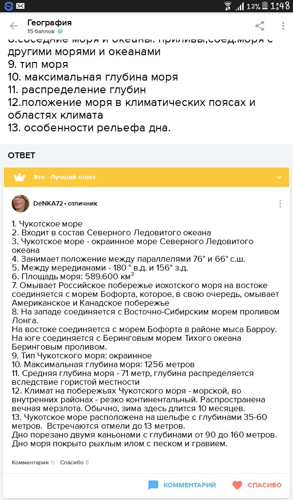 Описание Чукотского моря (первые пять вопросов я уже сделал)