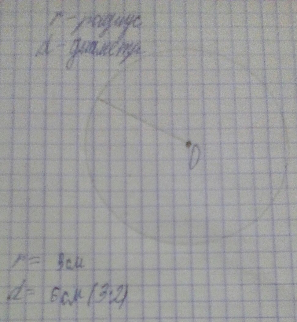 Отметьте в тетради точку О. приняв ее за центр. начертите окружность измерьте линейкой радиус окружности чему равен диаметр этой окружности?