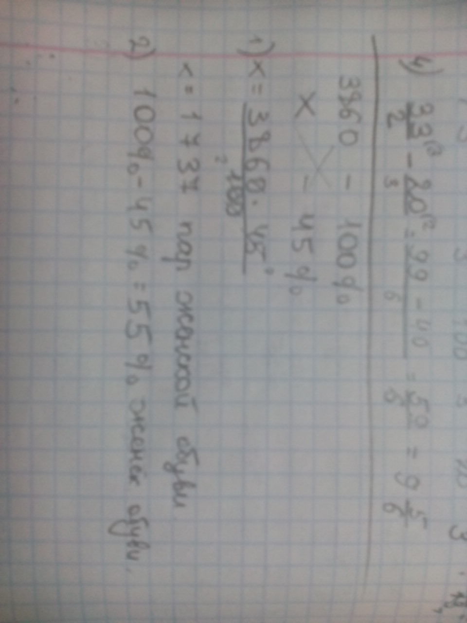 Фирма сделала 3860 пар обуви. 45% из неё – мужская. Сколько процентов обуви составляет женская?