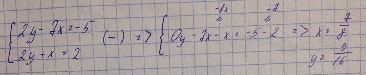 Проведя работу по данным условиям, получаем x=7/8 и y=9/16