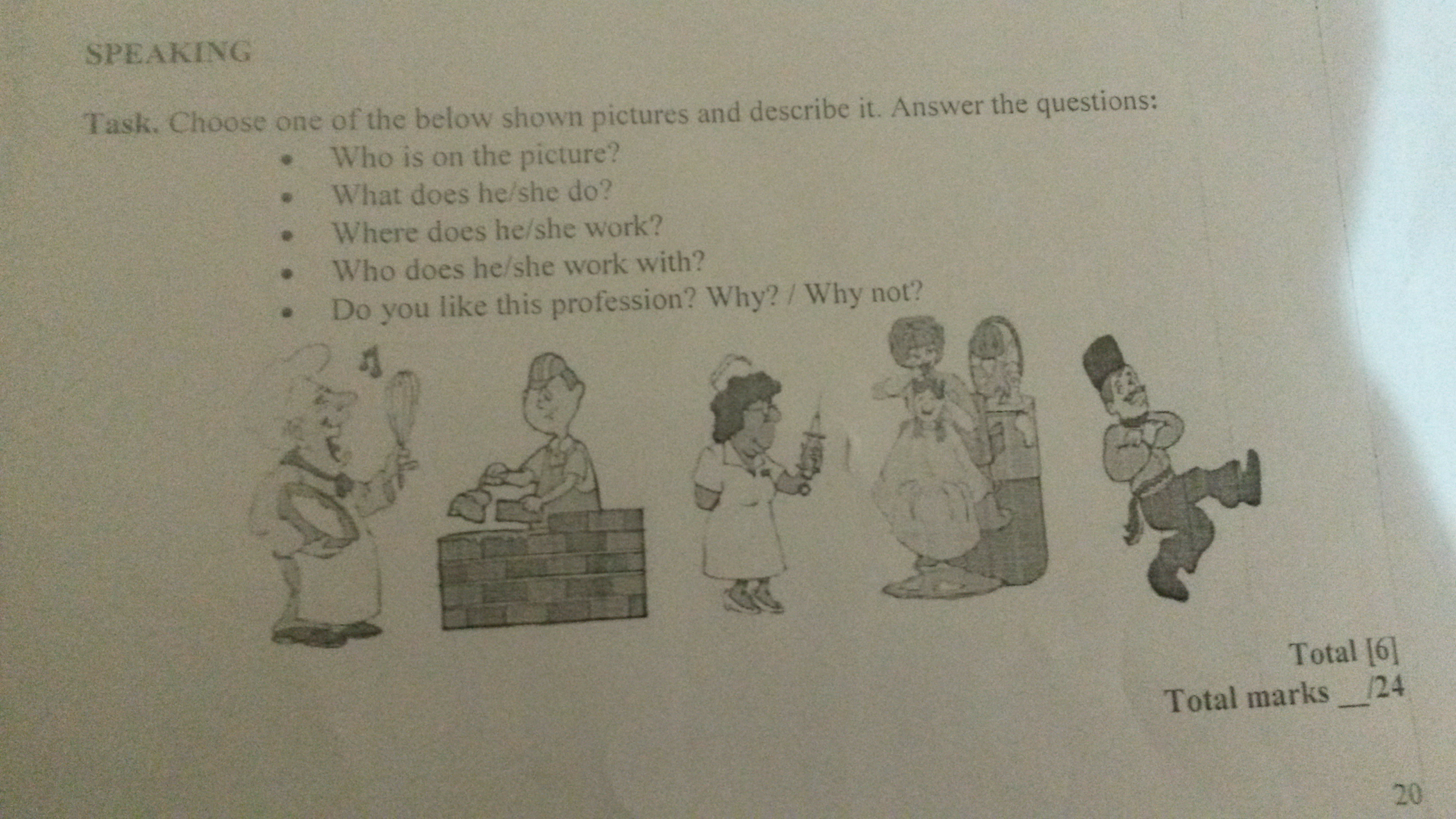 the picture shows chef, builder, nurse, the hairdresser, and the dancer.