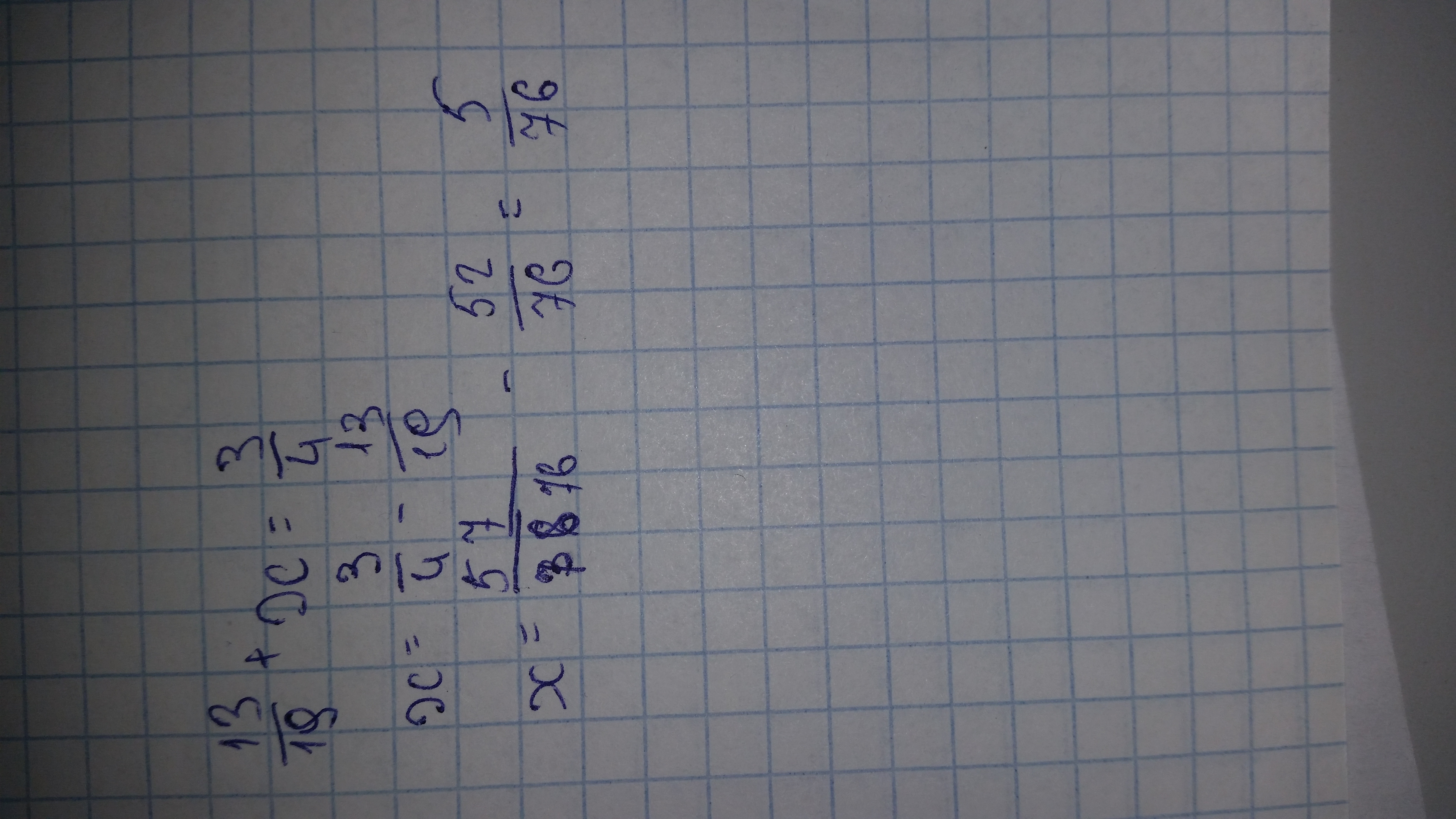 13/19 прибавим по 5, получим 18/24, сокращает на 6, получаем 3/4