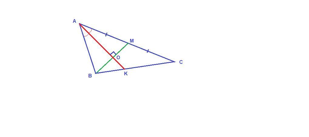В треугольнике АВМ биссектриса АО является высотой, значит ΔАВМ равнобедренный по признаку равнобедренного треугольника,