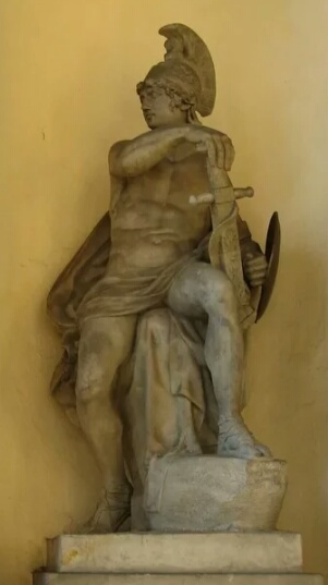 В книге «Искусство зарубежных стран» обнаружилась статуя под названием «Марс Тоди», но к ней не было абсолютно никаких комментариев (ни где нашли, ни из чего сделана), поэтому её описание ограничу несколькими словами. Изображен мужчина в кольчуге, но с голыми ногами, стоящий, руки подняты к верху, будто он жестикулирует. Верха головы и затылка нет, лицо с правильными чертами, но красивым не кажется. Так как нет никаких указаний на то, что это тот Марс-Арес, который нам нужен, то дальнейшие рассуждения не имеют под собой