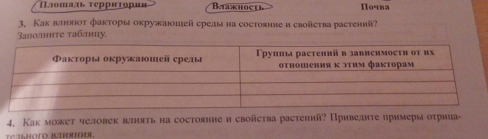 Как влияет факторы окружающий среды на состояние и свойства растений Заполните таблицу