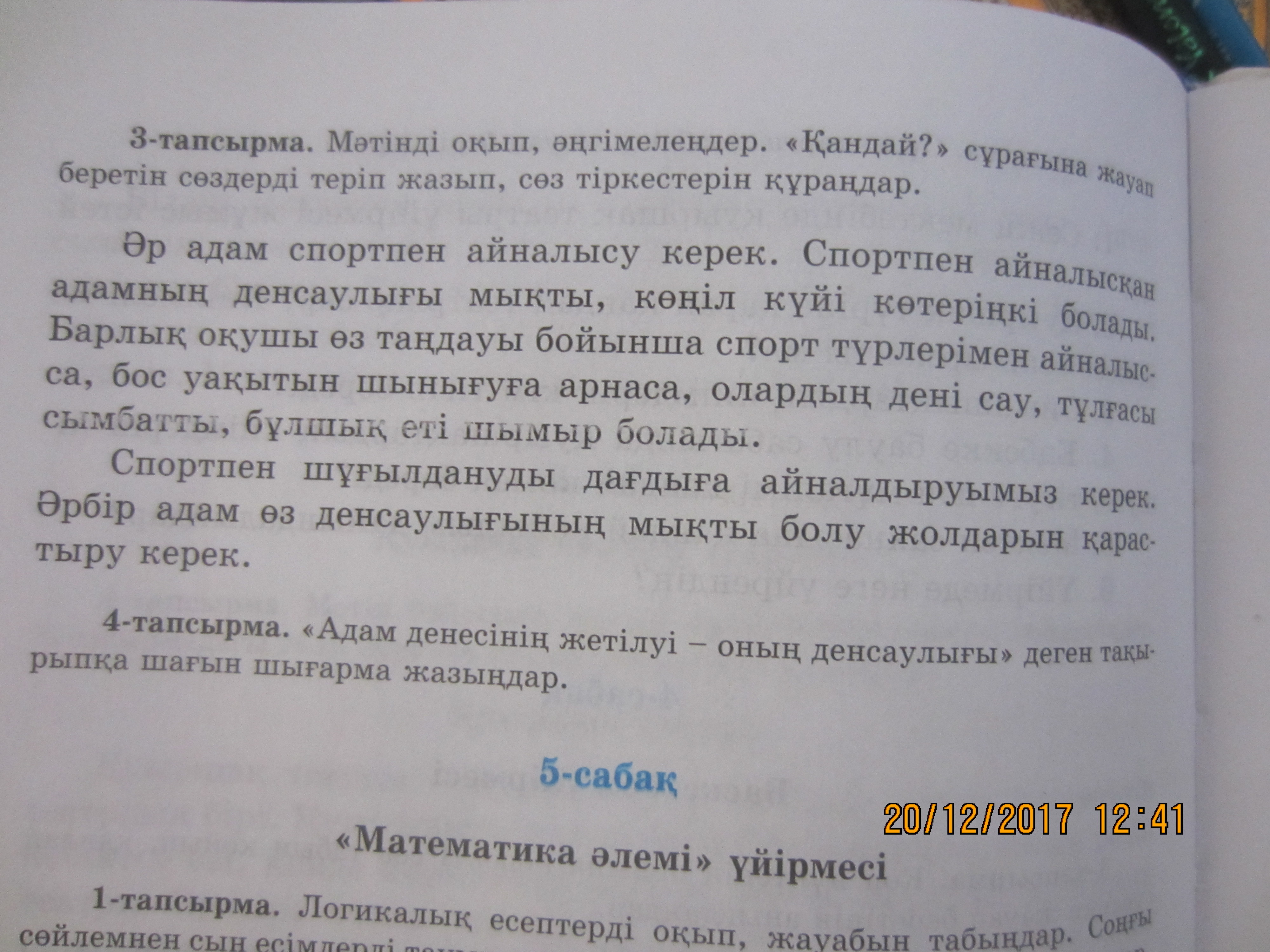 Денсаулығы мықты, көңіл күйі көтеріңкі, бос уақытын, дені сау, тұлғасы сымбатты, бұлшық еті шымыр.