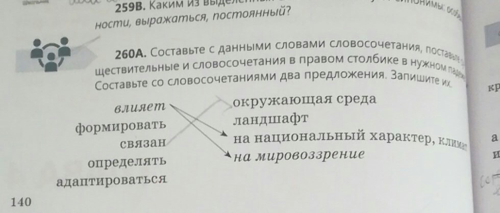 Определять: окружающая среда, ландшавт, на национальный характер, климат, на мировоззрение.