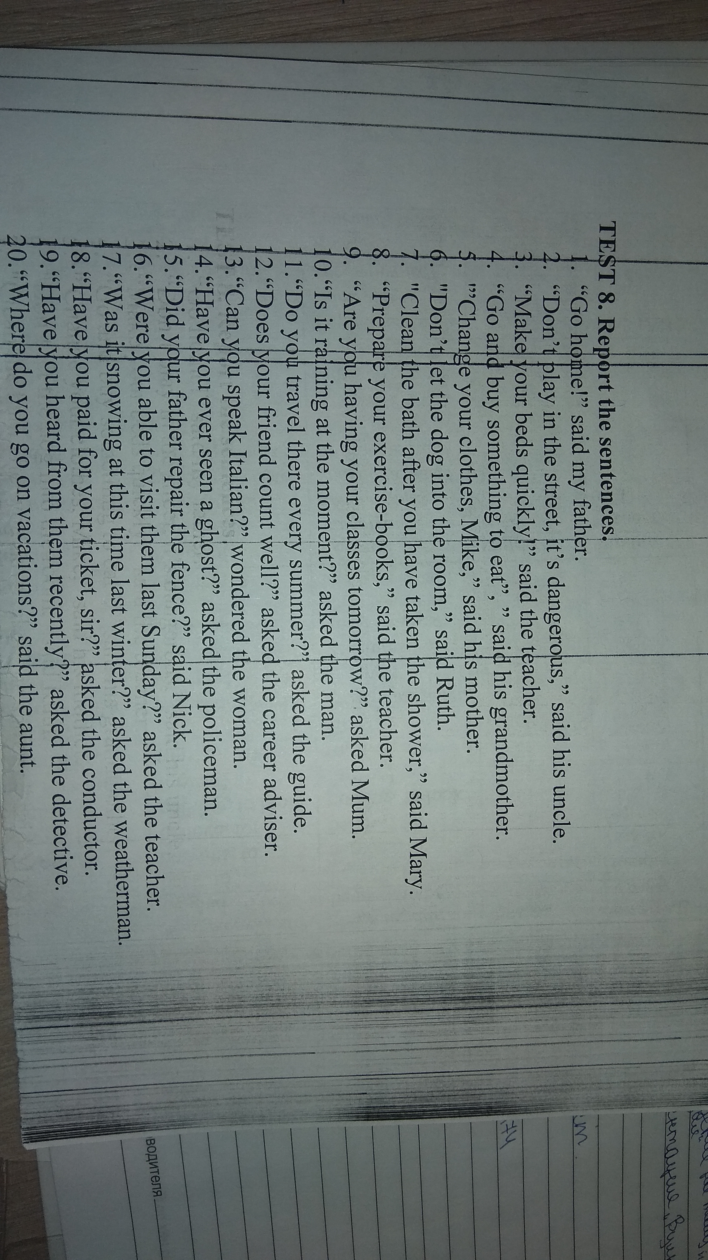 "report the sentences" прочитать задание можно. перевести в косвенную речь