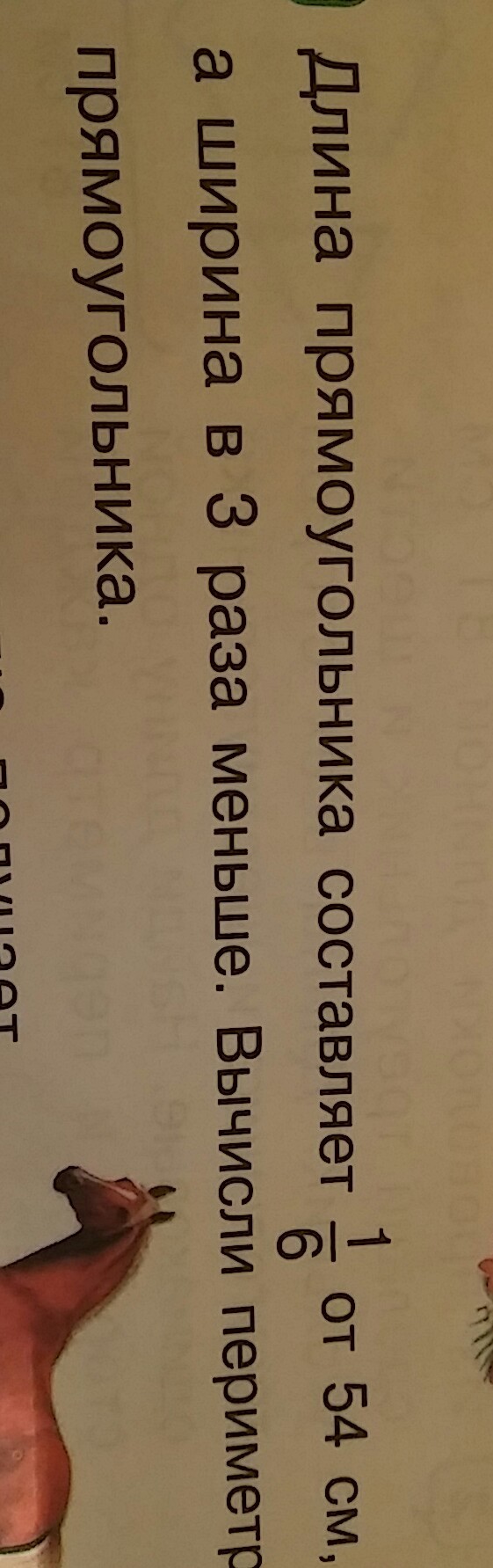 Длина прямоугольника составляет 1/6 от 54 см а ширина в 3 раза меньше Вычисли периметр прямоугольника