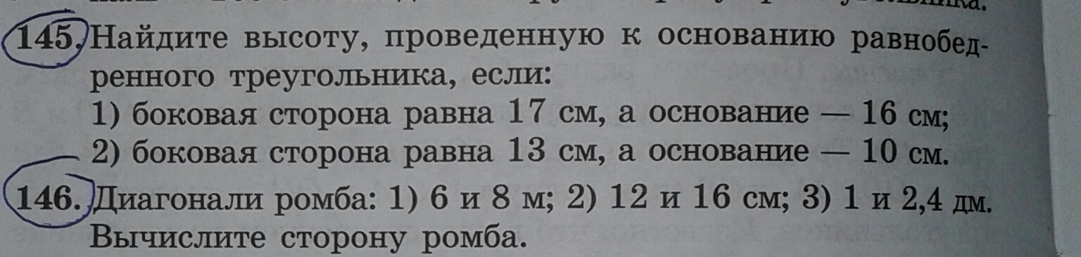 Высота в равнобедренном треугольнике является и медианой, делит основание напополам, а также является катетом в половинке равнобедренного треугольника и значит по теореме Пифагора его квадрат равен 17 в кВ. - 8 в кВ.=15